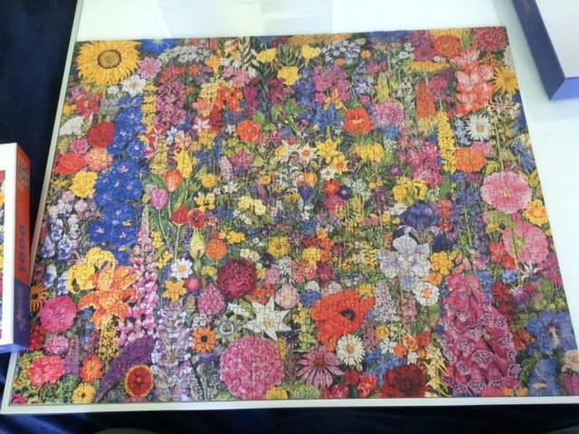 This particular puzzle was left in our house by a neighbor some years back. I am sure she now wishes she had brought it with her when she moved to another state. For a couple of days its 1000 pieces created some diversion.